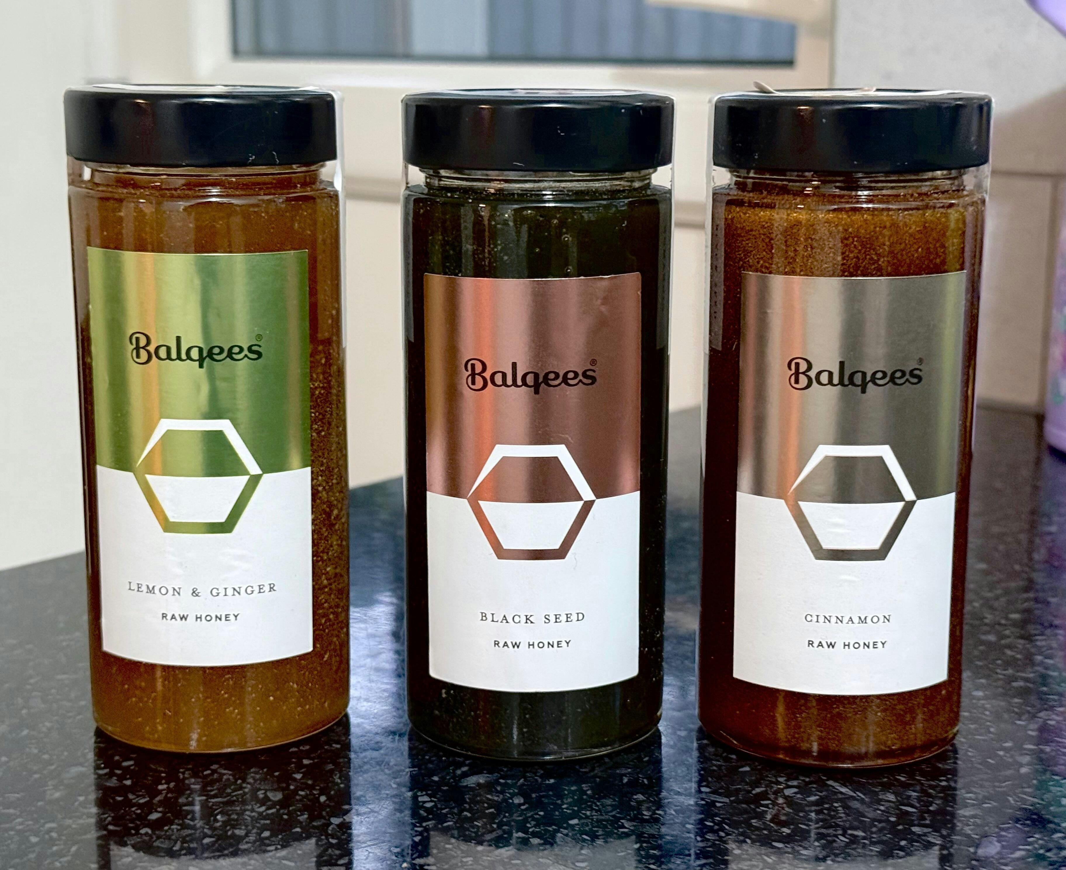 Packaging. All Balqees honey is packaged in recyclable glass jars.