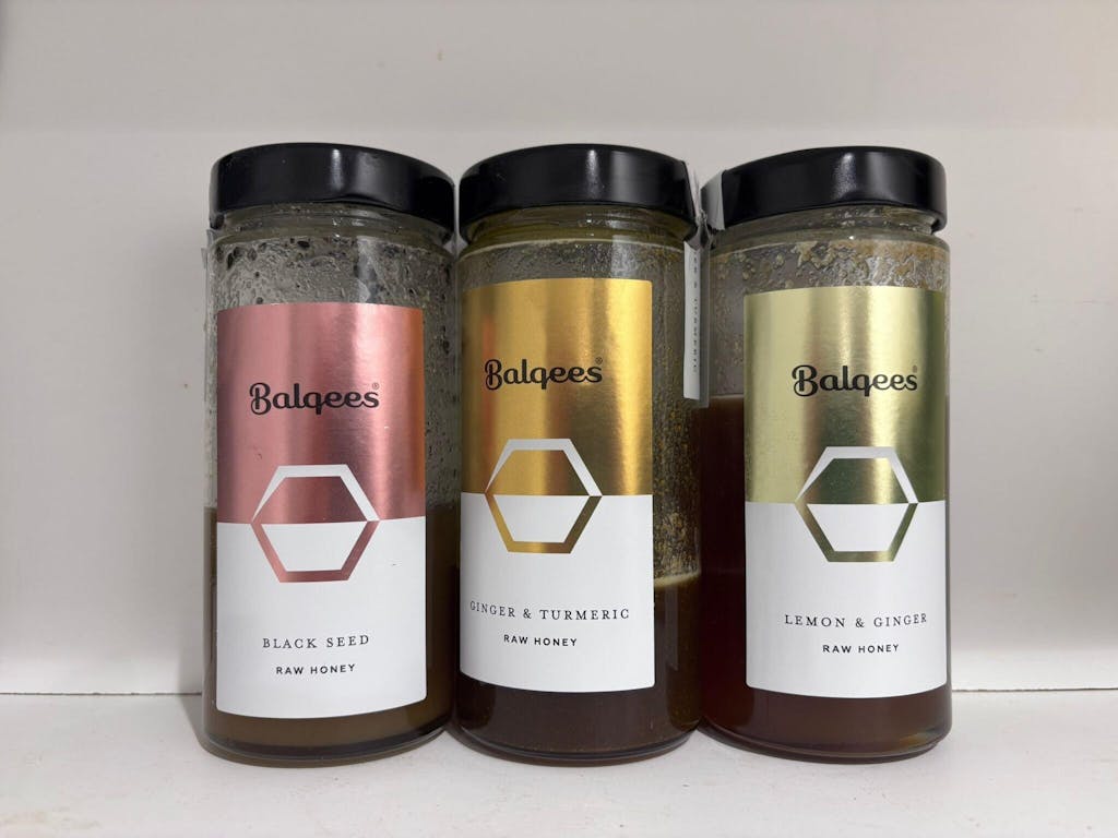 Packaging. All Balqees honey is packaged in recyclable glass jars.
